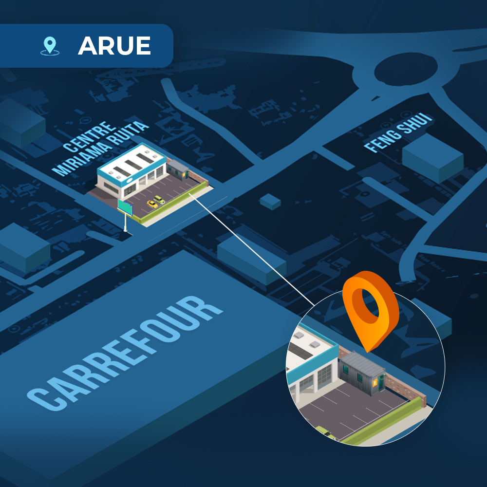 Nous sommes situés dans la commune d’Arue, à Tahiti au Centre Miriama Ruita, en face de Carrefour Arue. Notre emplacement est facilement accessible pour récupérer et restituer votre scooter.